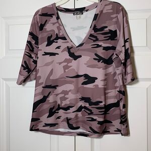 Venus extra-large V-neck half sleeve top Brown and black Camouflage. Like new condition and smoke free/pet free home