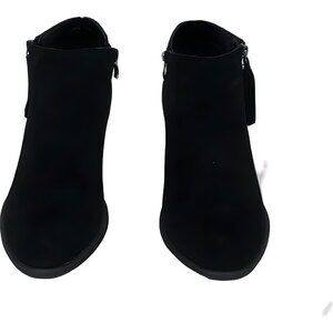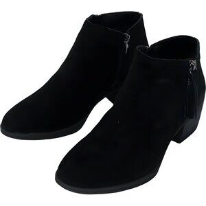 Vepose 9002 Suede Leather Ankle Booties Black Zip Block Heel Women US 8.5