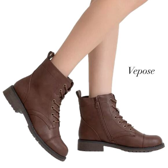 Vepose Cognac Lace up Low Heel Fashion Combat Booties Ankle Boots NIB Size 11