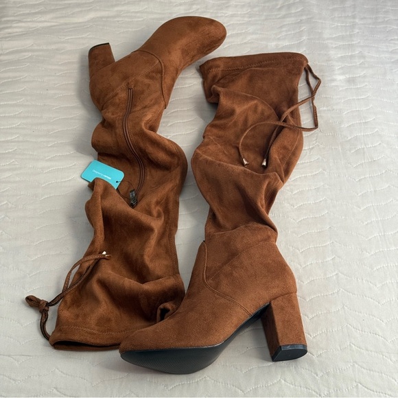 Step out in style with these elegant brown suede boots. Perfect for any occasion, these boots offer both comfort and sophistication. Knee length style boots to keep you warm from cold weather. Side zipper closure and adjustable tie string at the top to give you a secure fit. Boots that are a fashion statement. Made from high-quality stretch fabric, soft and comfortable for everyday wear.