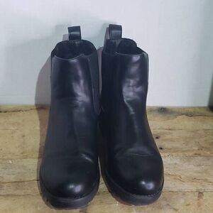 Vepose Women's 936 Chelsea Ankle Boots Platform Lug Sole black slip on booties