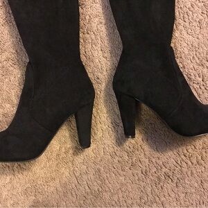 Thigh high boots with comfy lining; soft insole; elestic suede and non slip rubber sole