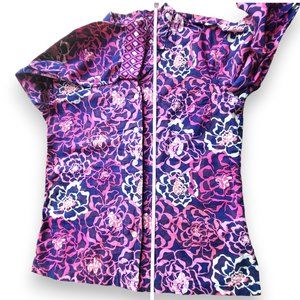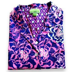 Excellent lightly used condition! No rips, stains, odors, flaws any where. Extra button sewn into garment. Irresistibly soft and playfully patterned, Great buy. From a non-smoking, cat friendly home. All my items are washed, dried, ironed and ready to wear.