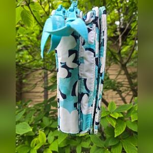 The Vera Bradley 3 in 1 Crossbody Wristlet in the pattern of Cut Vines is a versatile and stylish accessory for women. This all-in-one wallet features a zip-around closure, credit card slots, RFID blocking technology, and an optional strap for added convenience. With its compact size of approximately 7 x 4 x 2 inches and a beautiful blue color, this wallet is perfect for on-the-go use while maintaining a fashionable look. The Vera Bradley brand ensures quality and the flower theme adds a touch of charm to this practical yet trendy accessory. The wallet is is excellent condition - it is clean inside and out with no rips, holes, stains, or signs of wear.