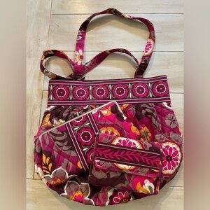 Vera Bradley 3 piece purse set. Burgundy Pink Gold retired pattern. Includes purse, wallet and snap closure wallet. Very clean inside possibly new