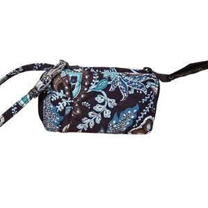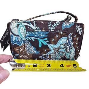 Vera Bradley All in One Wristlet Wallet Zip Java Blue Turquoise Brown