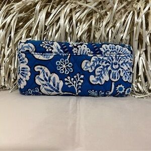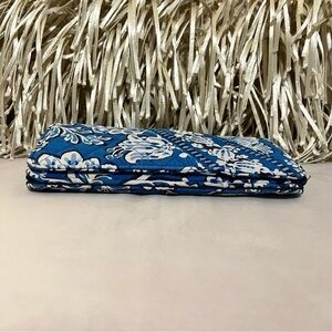 Vera Bradley BLUE LAGOON 2014 Travel Wallet White Floral Quilted lots of Slots