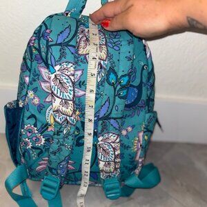 Vera Bradley small back in the print Peacock Garden. This bag has never been used and is in GREAT condition. Please see photos for approximate measurements. Two side pockets—one has a zipper that expands.