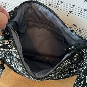 Vera Bradley Bag, quilted black and white paisley print, zipper closure, exterior and interior zipper pockets, excellent condition.