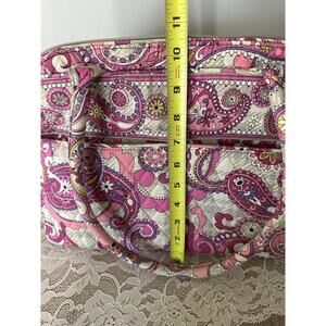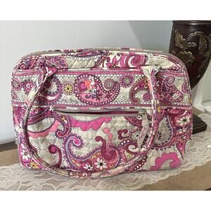 This beautiful Vera Bradley Bowler Bag/Tote features a unique paisley meets plaid pattern in shades of pink, and is perfect for any fashion-forward woman looking for a versatile and stylish accessory. The bag is made of a high-quality cotton blend material with a convenient zip closure and comfortable cotton handle/strap in a matching multicolor design.