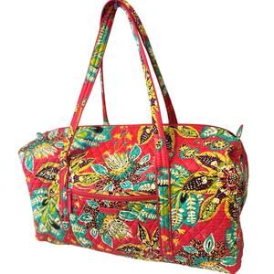 Vera Bradley Bag Red Multi Floral Quilted Duffle Weekender Travel Bag