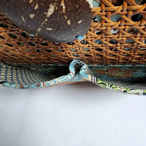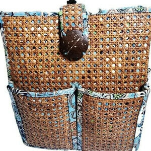 Vera Bradley Bali Tiki BAG TOTE Purse Wicker Summer Wicker Cane Blue And Brown