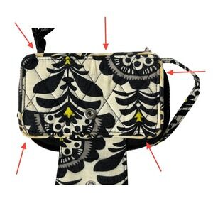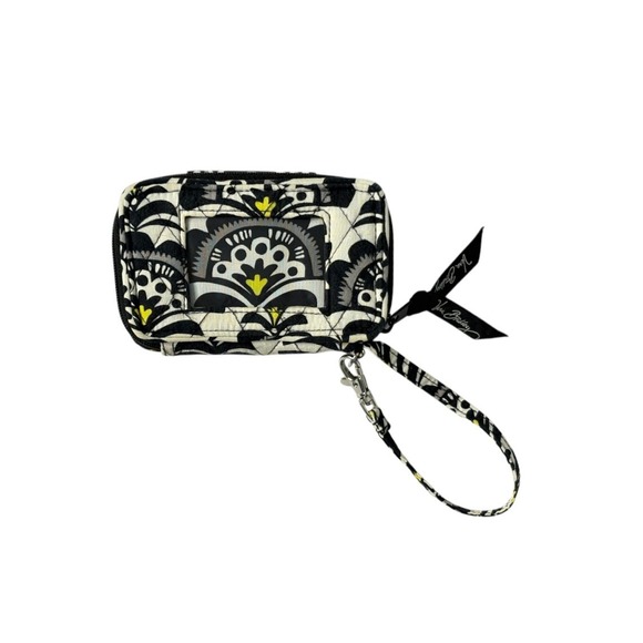 Vera Bradley "Baroque" Black White Floral Zip Around Wristlet Quilted