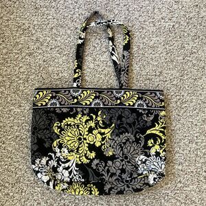 Vera Bradley Baroque Tote Bag Baroque Shoulder Black Gray White Quilted Large