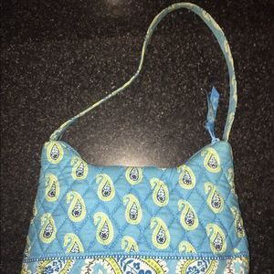 RETIRED Spring 2005 Vera Bradley Bermduda Blue Small Hand Bag. Great condition. Slight wear on straps but no stains and no tears. Still has the solid base. Perfect addition for a collection.