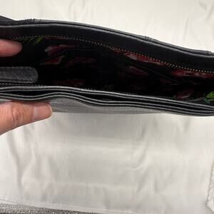 Vera Bradley Black Leather Crossbody Bag Patchwork Pebbled Suede Floral Lining