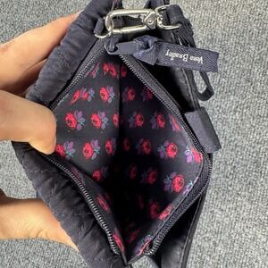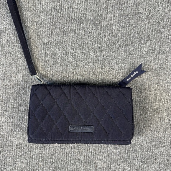 Vera Bradley Black Microfiber RFID Wallet Blue Pink Floral