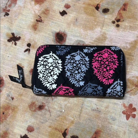 Vera Bradley Black, Pink, and White Leaf Design Wallet