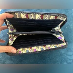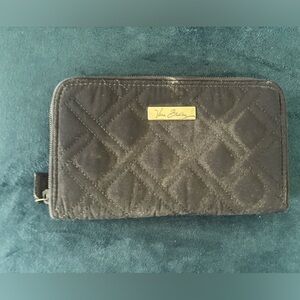 Chic black quilted clutch by Vera Bradley. Features elegant stitching and a sleek design.