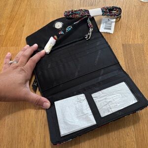Black quilted convertible crossbody strap wallet in parisian paisley from vera bradley. Zipped pockets on the back. Multiple card slots. Measurements in the photos. New with tags. Thank you for visiting my closet and supporting a small business. Check out the rest of my closet for similar styles and sizes! Bundle three items and save 15%
