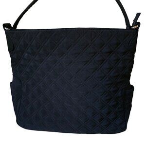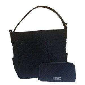 Vera Bradley Black Quilted Diamond Shoulder Bucket Purse with Zip Around Wallet