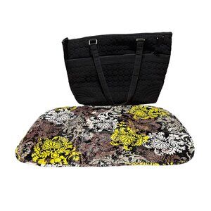 Vera Bradley Black Quilted Large Diaper Bag Changing Pad Floral Vinyl Interior