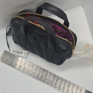 The Vera Bradley Black Quilted Mini Bag combines elegance and functionality with its compact design and luxurious quilted texture. Crafted with a structured shape, this mini bag features a distinctive diamond pattern and metallic hardware, making it a sophisticated accessory for any occasion.