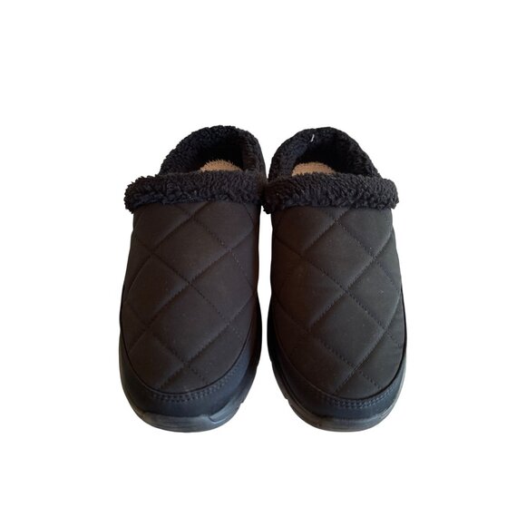 Vera Bradley Black Quilted Slip-On Slippers Faux Fur Lining Rubber Sole Size 10