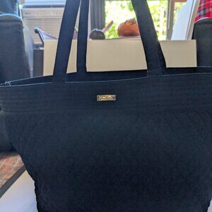 Vera Bradley Black Quilted Weekender Tote Bag with Leopard Inside