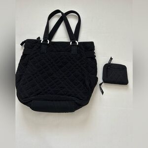 Vera Bradley Black Quilted Zebra Print Lining Tote Bag and Black Zip Wallet