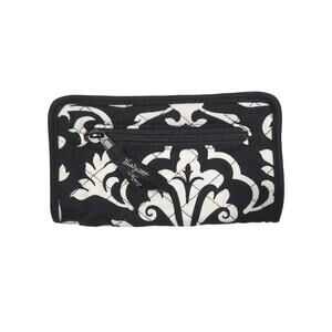 This is a Vera Bradley zippered wallet in a black and white design.