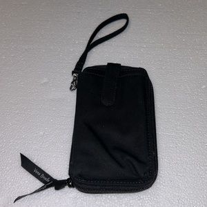 Vera Bradley Black Wristlet New without Tags. Outer cell phone pocket and inner card/cash pockets.