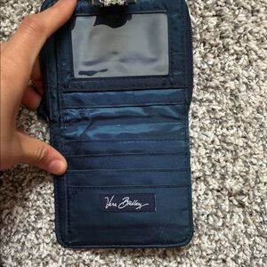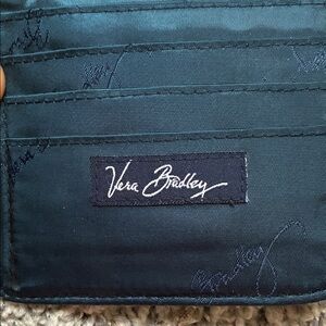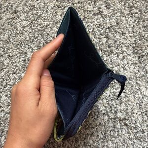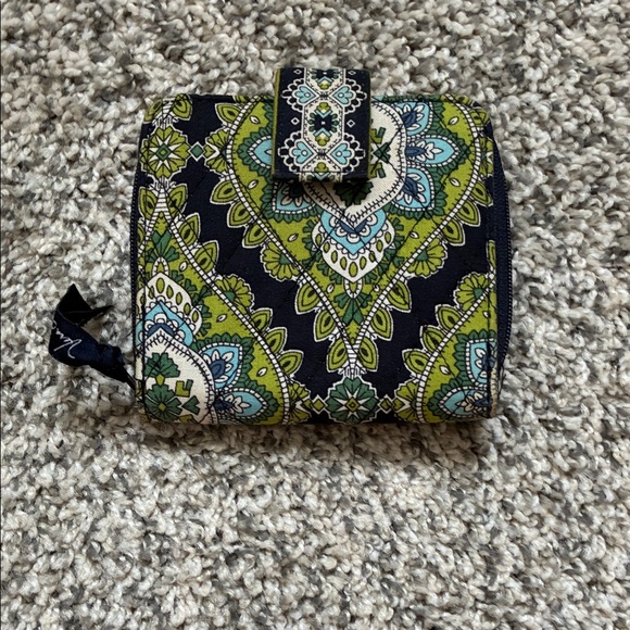 Chic wallet with intricate green and blue design. Compact and stylish.
