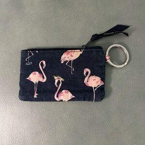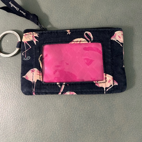 Chic card holder with vibrant pink interior. Secure zipper closure.