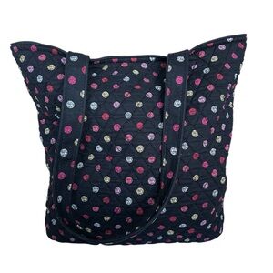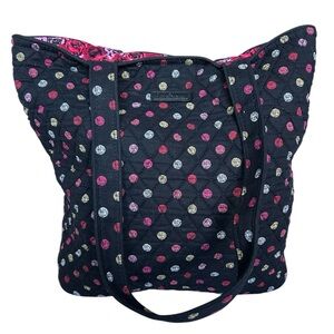 Vera Bradley Black and Pink Polka Dot Tote Bag with Wide Straps