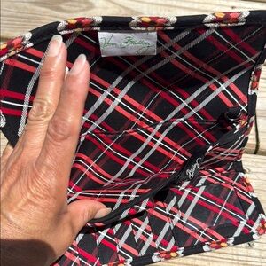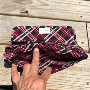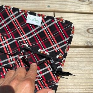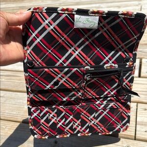 Vera Bradley Black and Red Quilted Wallet with Floral Geometric Pattern