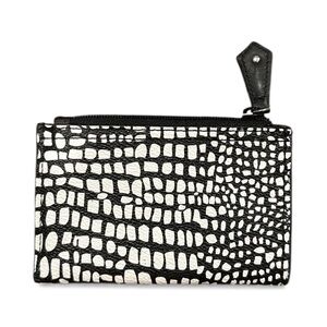 Stylish black and white croc-embossed wallet. Compact and chic design.