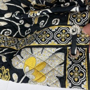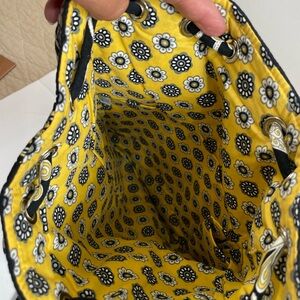 Stylish bag with bold floral patterns. Features intricate black and yellow design. Ideal for everyday use.