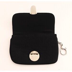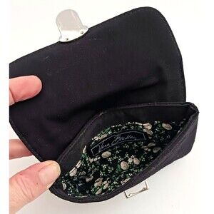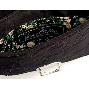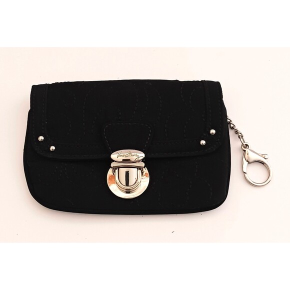 Vera Bradley Blk Quilt Microfiber ID Wallet w Keyring Silver Pushlock 6X4