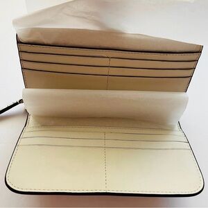 Interior features 12 card slip pockets, two slip pockets and a compartment divider