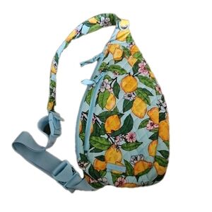 Vera Bradley Blue And Yellow Lighten Up Essentials Lemon Grove Sling Bag