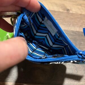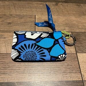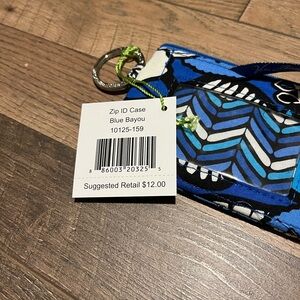 Stylish ID case with vibrant blue and black pattern. Includes key ring and ID window.