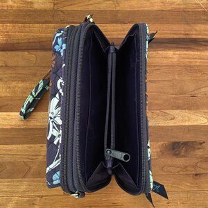 Vera Bradley Crossbody Quilted Wallet/Purse Blue & Brown Multiple Compartments