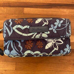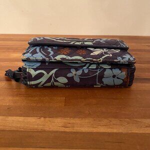 Vera Bradley Blue & Brown Crossbody Quilted Wallet/Purse Multiple Compartments