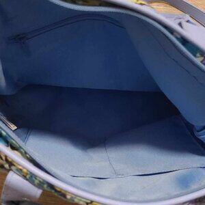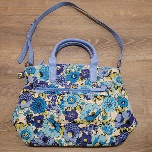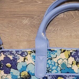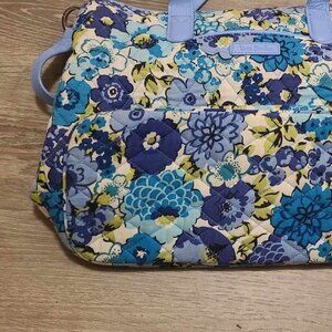 Vera Bradley purse in good condition. No stains but there is slight damage to the piping edge at the top as pictured. The bag is otherwise in excellent shape! It has an adjustable shoulder strap as well as carrying handles. It has one zip pocket on the exterior and one on the interior. It also has 2 small open pockets inside. The bag zips shut at the top as well!
