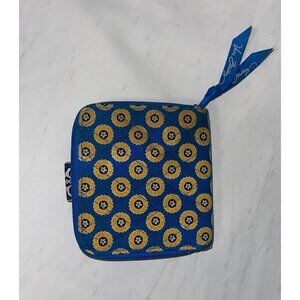 Vera Bradley Blue & Gold Bifold Wallet With Zipper Compartment