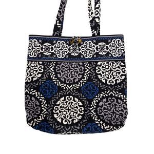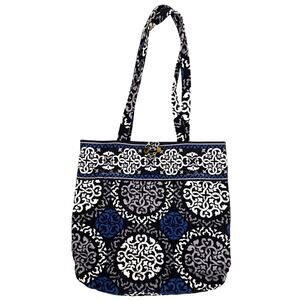 Vera Bradley Blue Patterned Shoulder Bag Toggle Closure Preppy Fabric Tote