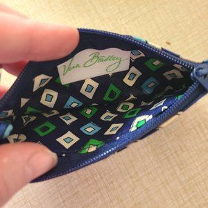 Vera Bradley Blue White and Green Floral Coin Purse is an adorable addition to any purse or keychain. The item is in near perfect condition. Inside is clean. Has the open panel for ease of ID access.