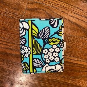 Chic wallet with floral design. Features blue, green, and white colors. Perfect for everyday use.