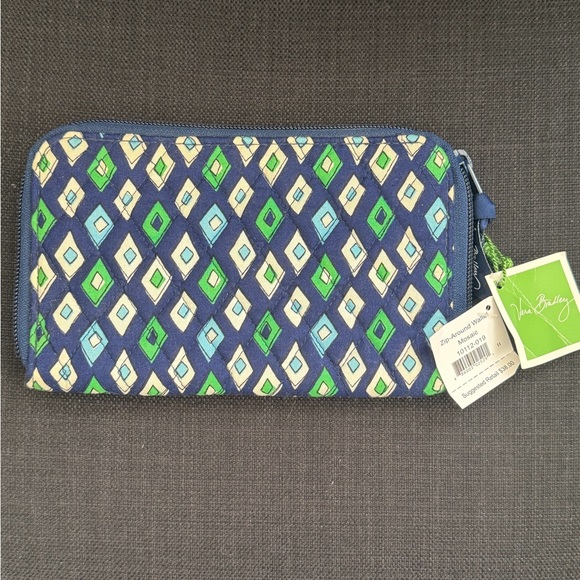 Vera Bradley Blue and Green Zip-Around Mosaic Diamond Wallet